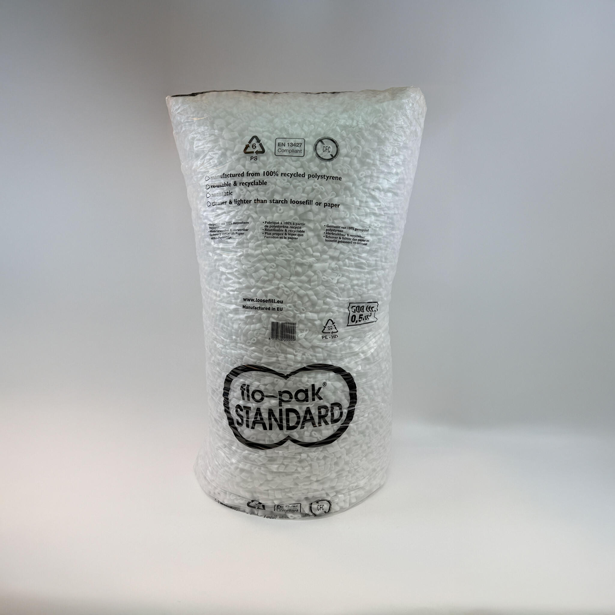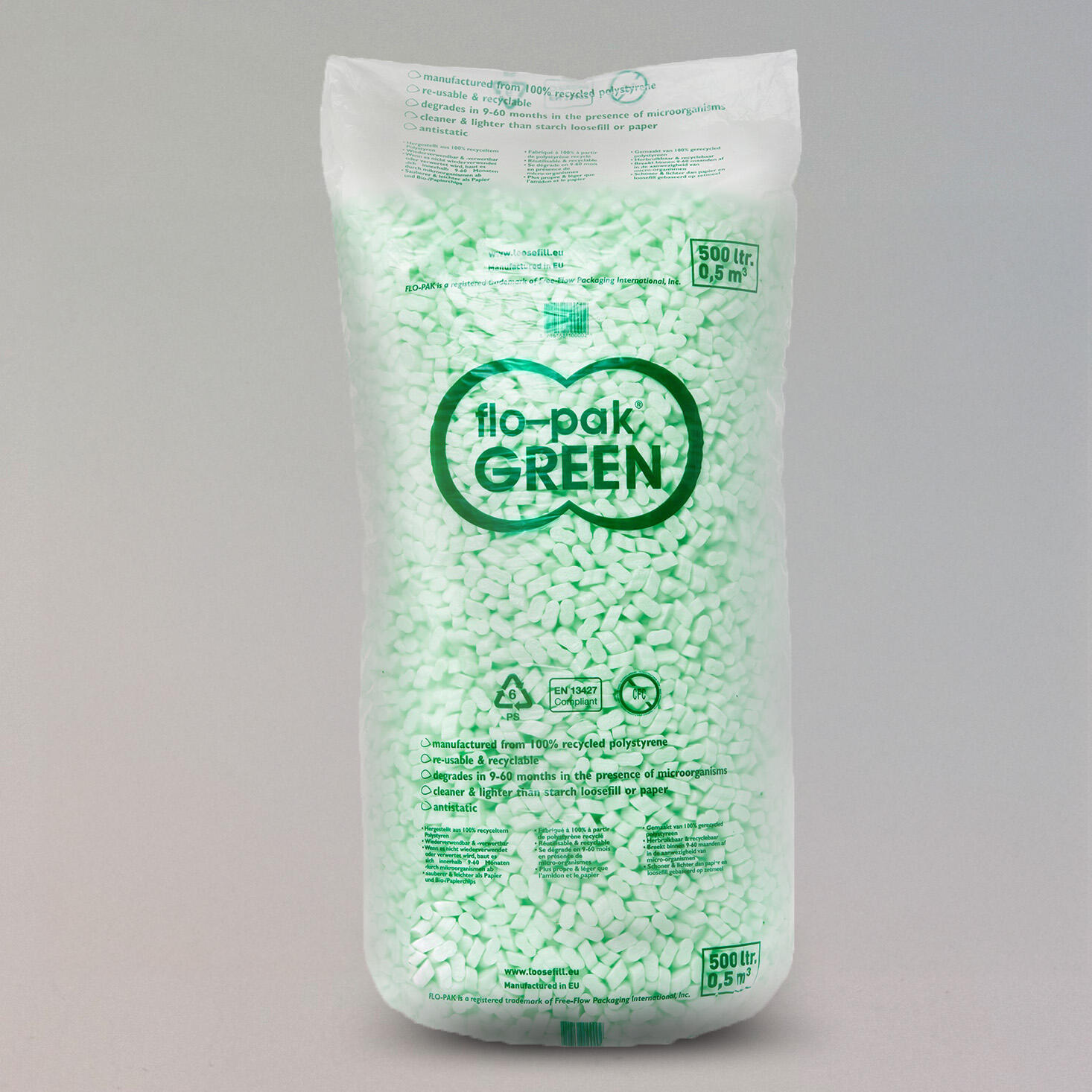 Lichtgewichte schuimchips die zich nestelen tussen je producten. Dempen schokken, vullen lege ruimtes en zijn herbruikbaar. Ook verkrijgbaar in biologisch afbreekbare variant (Flo-Pak Bio green).